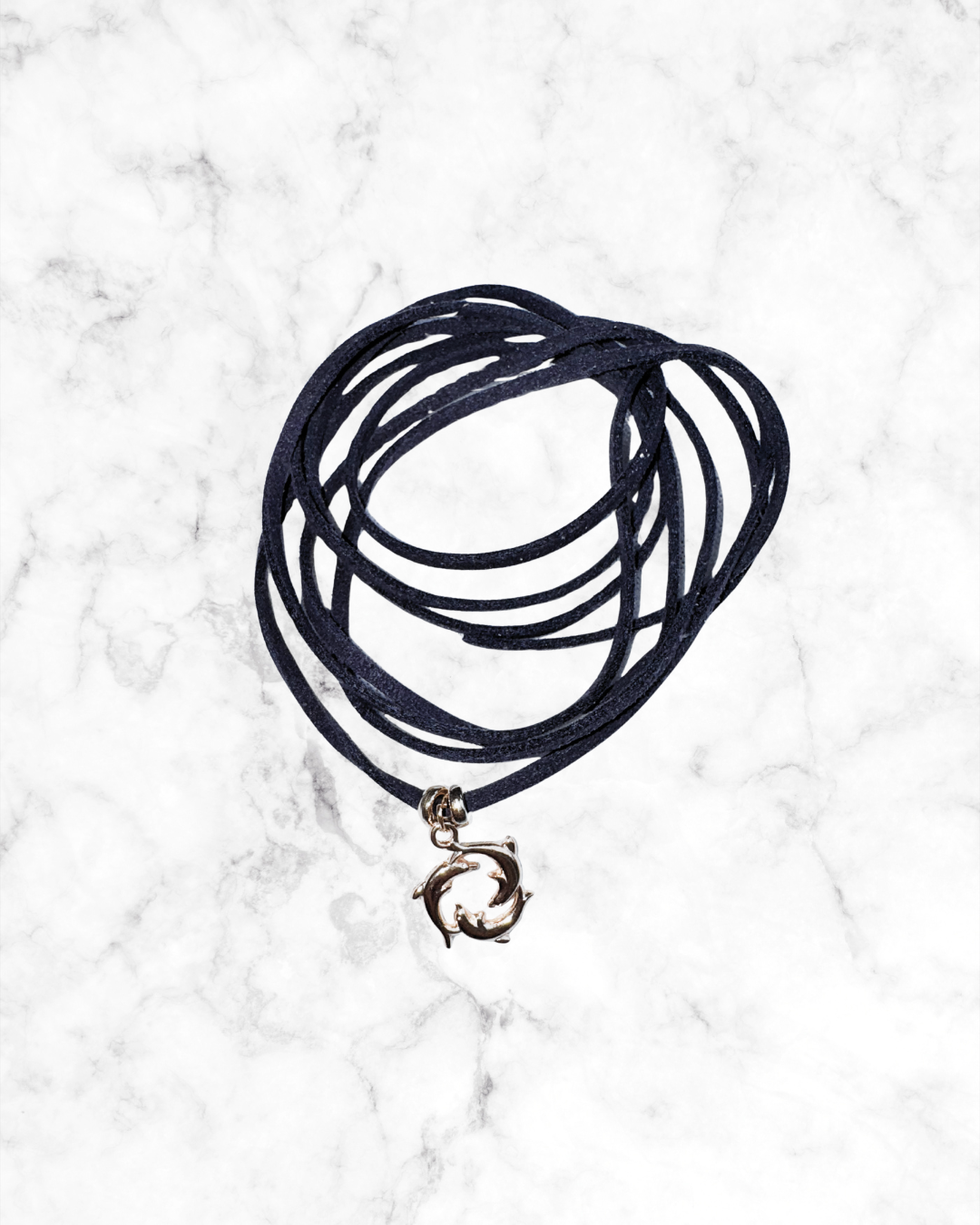 Choker in Camoscio Blu con pendente Delfini.