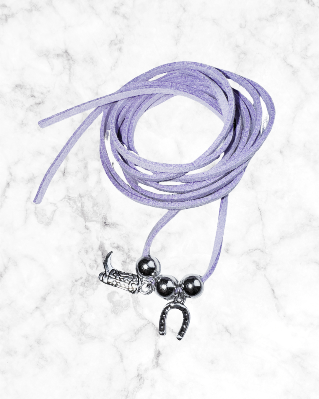 Choker in Camoscio con pendenti Ferro di cavallo e Stivale.