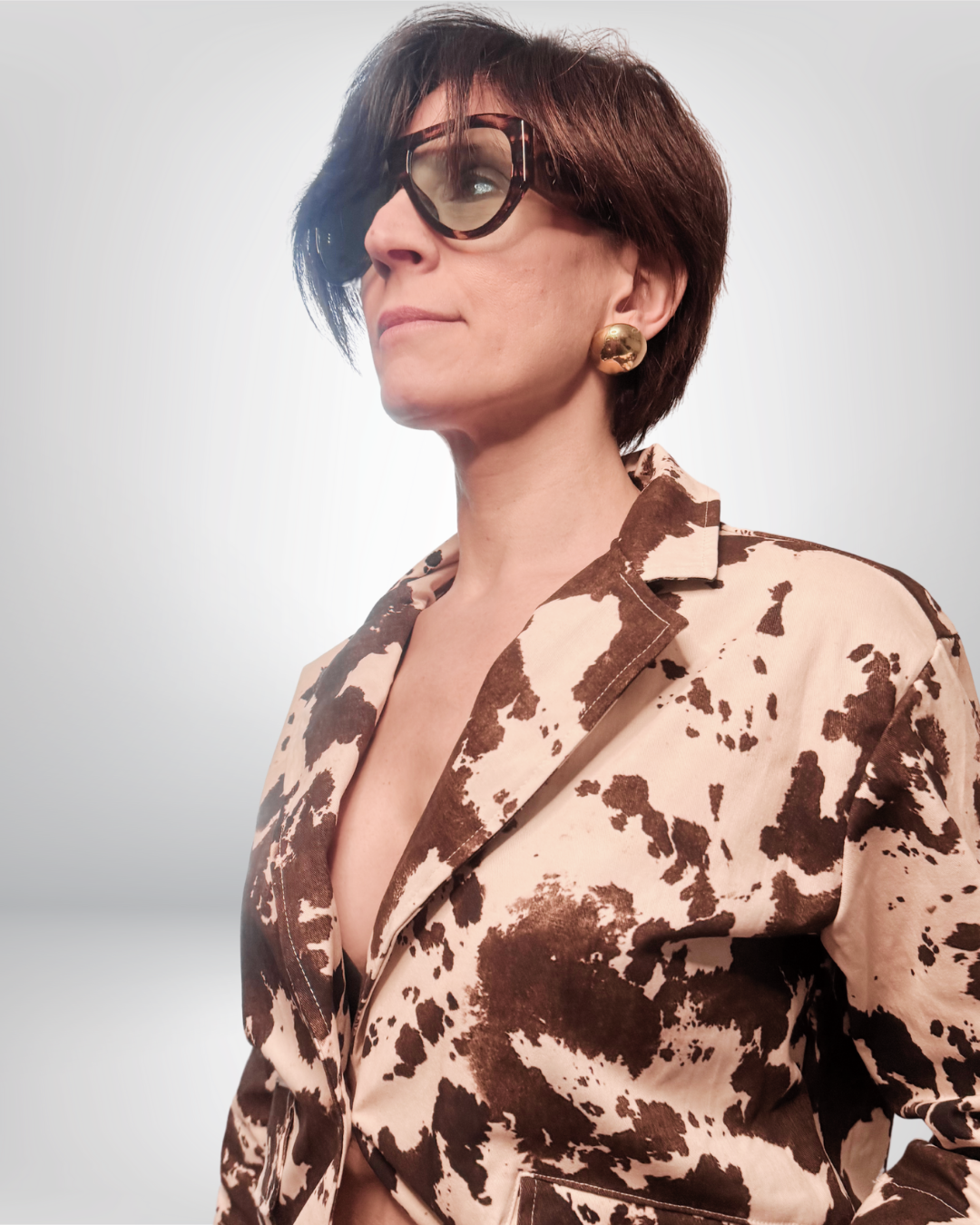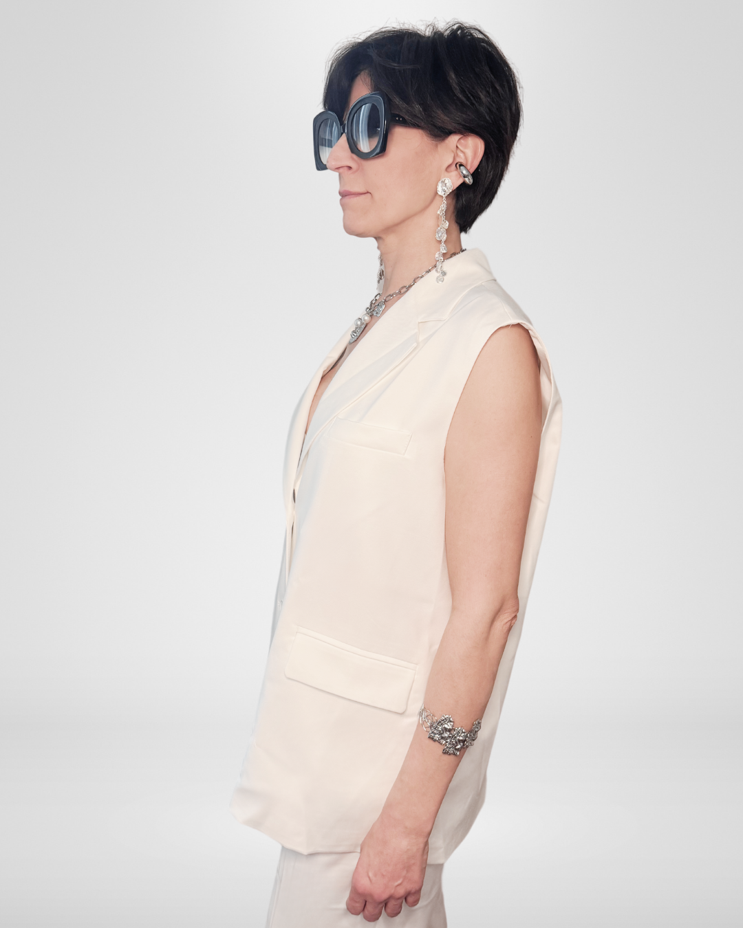 Un blazer smanicato con taglio dritto è un capo elegante e versatile, ideale per diverse...