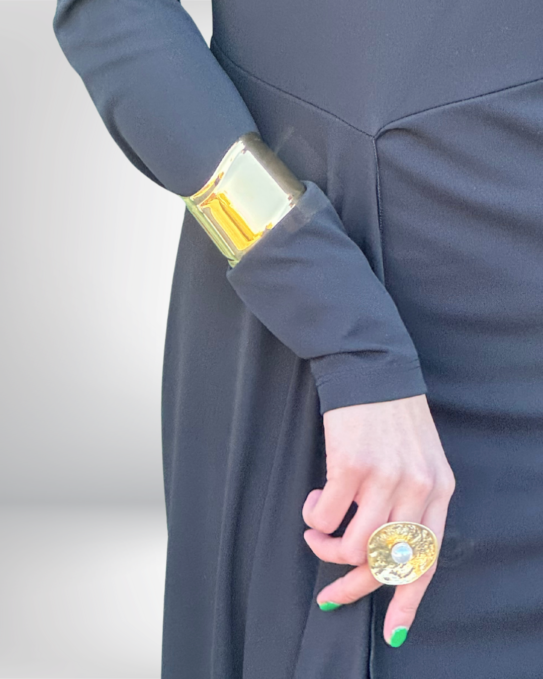 Il bracciale “Dafta” è un elegante accessorio in acciaio color oro, caratterizzato da un design...