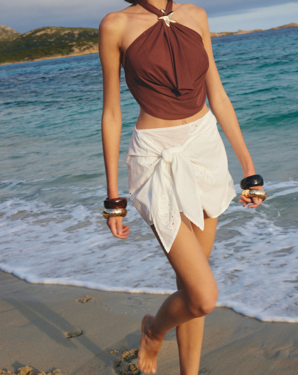 Minigonna LUMINA in cotone pizzo sangallo.Linea dritta. Presenta fiocco regolabile. Fit regolare